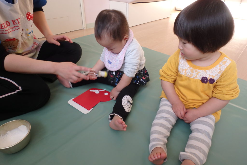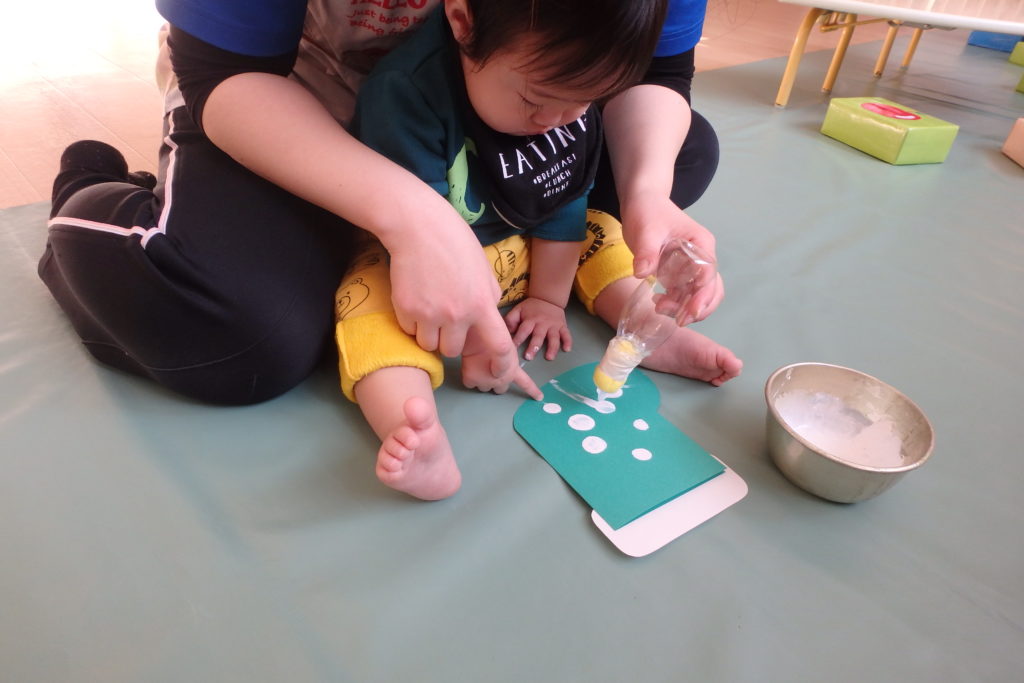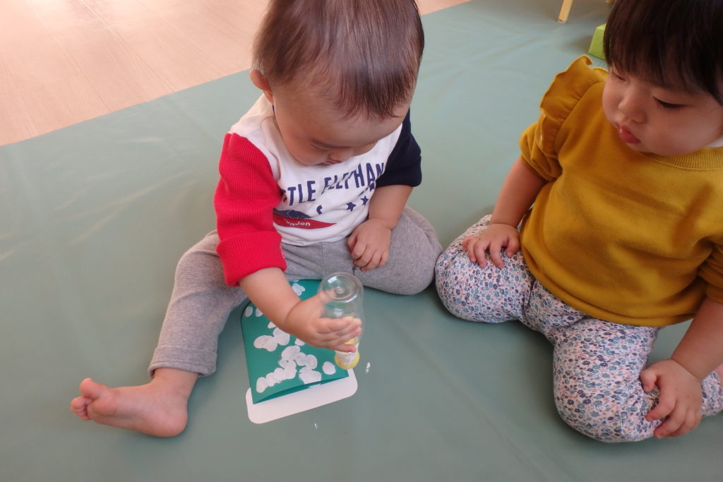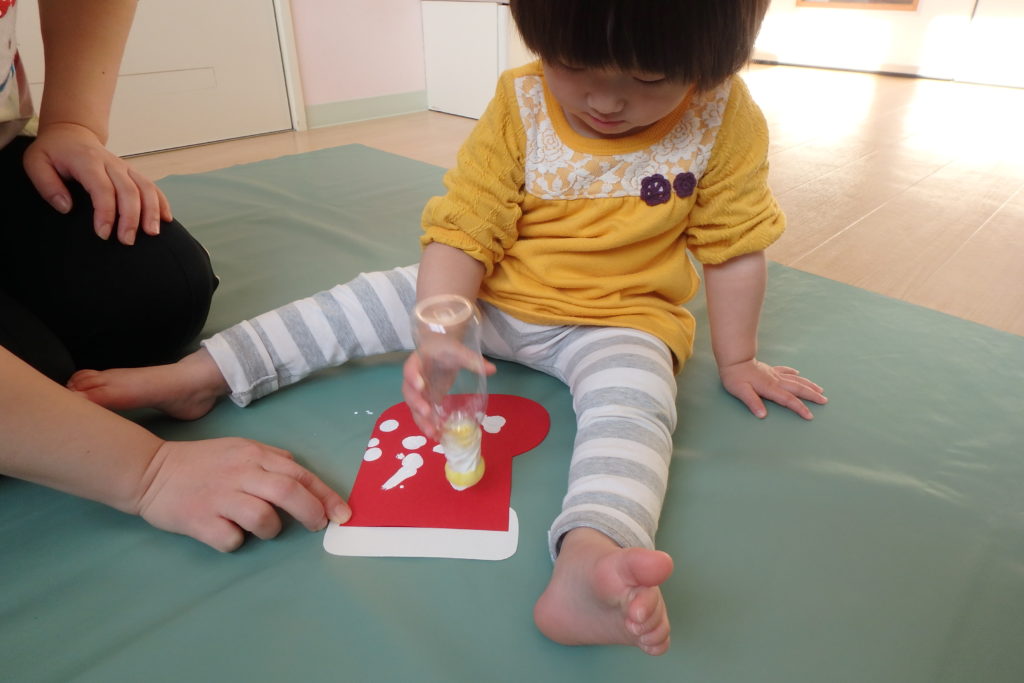 保育士と一緒にポンポン❣自分でポンポン❣ 好きなように楽しめましたよ😊