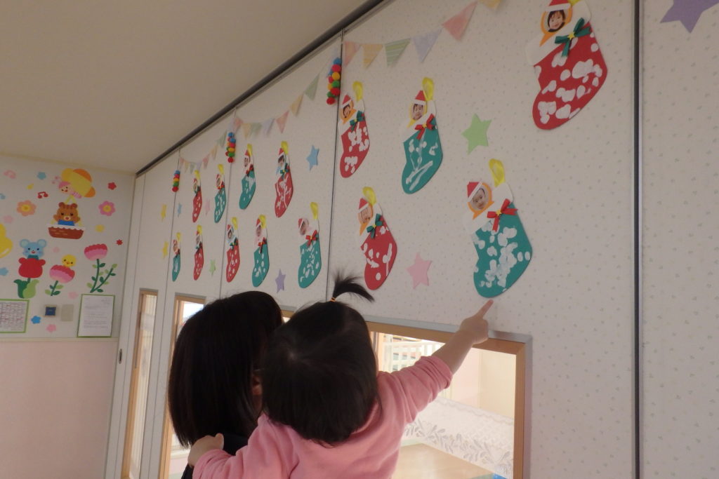 こんな風に飾りました♪♪ 保育士に、指差しで自分のブーツを教えていました😉
