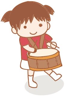 マーチングを通して、集中力、忍耐力、協調性を身につけながら達成感を味わうとともに、健康な体の基礎作りをしています。
